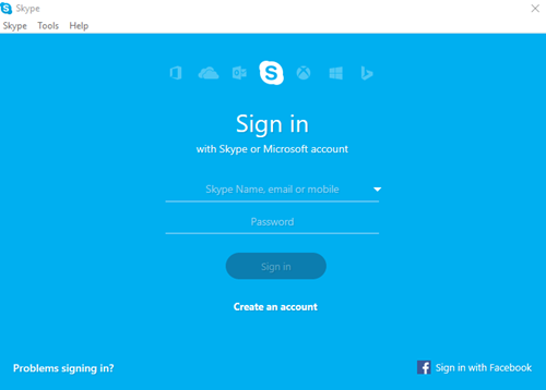 - Enter your Skype username or e-mail address and Password and click Sign In.