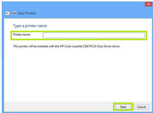 - Assign a name to the printer and hit Next (preferably the hostname to easily identify and troubleshoot)
