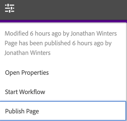 If you are already have opened and are editing a page, to immediately publish any changes you may click the page information button.