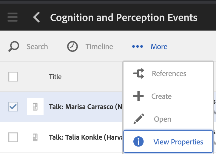 First, in the top right corner of AEM be sure to toggle out of card view and switch to list view.